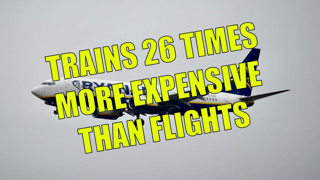 The Europe-wide study, covering 142 international routes across 31 countries, found that flying is cheaper than taking the train on more than half of all cross-border journeys. And when it comes to the UK, the situation is among the worst in Europe: trains are more expensive than flights on a staggering 95% of routes to and from Britain.