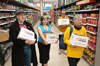 Activists from campaign group Take Back Power removed boxes of food from supermarkets in four UK cities, saying the action was intended to highlight…